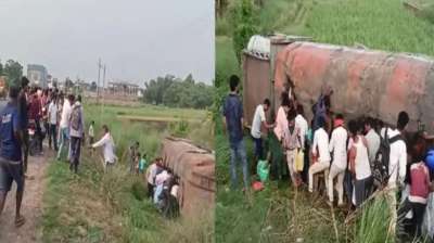 पूर्वी चंपारण में तेल टैंकर पलटा, ग्रामीणों ने लूटा तेल