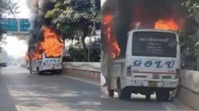 इंदौर में बड़ा हादसा: पटेल ब्रिज के नीचे विधायक गोलू शुक्ला की बस में लगी आग