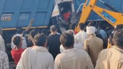NH-48 पर भीषण हादसा, खड़े डंपर से टकराया दूसरा; चालक केबिन में फंसा