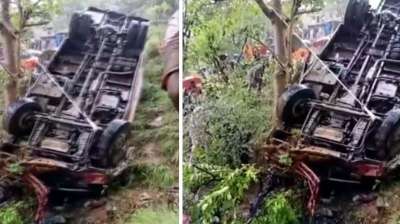 कमरूनाग से लौटते हुए श्रद्धालुओं की पलटी बस, 14 प्रवासी मजदूर घायल