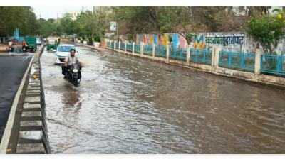 भोपाल में लोक भवन के सामने सड़क धंसने से हड़कंप, पानी भराव से लोग परेशान