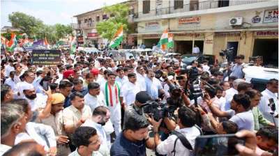 जयपुर में कांग्रेस का पैदल मार्च, गहलोत के साथ पायलट, डोटासरा भी उतरे सड़क पर