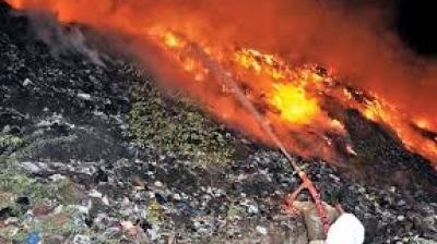 डंपिंग यार्ड में आग का तांडव, दो कम्पोस्टिंग मशीनें जलकर खाक