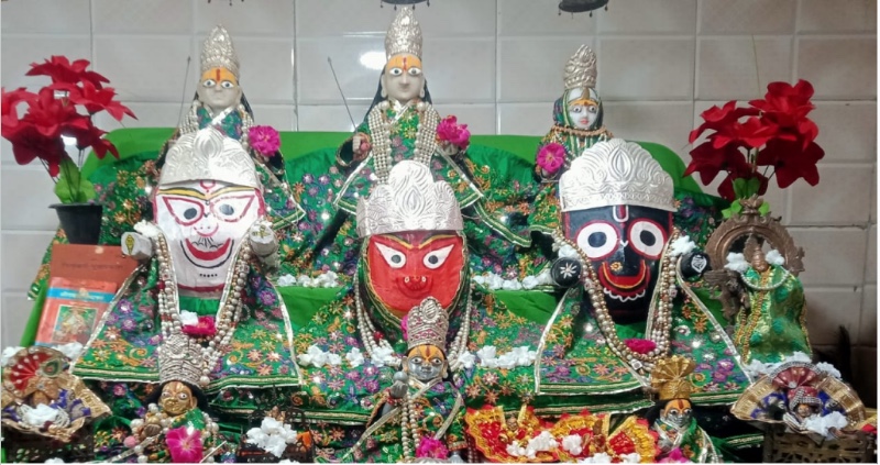 वह चंदन काठ की लकड़ी से निर्माणित मूर्ति है, जिसे लटूरिया दास जी महाराज ने भाटापारा से लगभग 610 किलोमीटर की दूरी पर स्थित उड़ीसा राज्य के ‘पूरी’जहां भगवान जगन्नाथ का मंदिर है जो चारों धाम में से एक धाम है, वहां से लाया गया है लटूरिया दास जी महाराज जी के द्वारा भाटापारा से पैदल उड़ीसा राज्य के ष्पूरीष् पहुंचे और वहां से अपने मित्र मंडली के साथ भगवान जगन्नाथजी, सुभद्रा देवी एवं बलभद्र जी महाराज की मूर्ति को लेकर वापस पैदल भाटापारा आए और इस मंदिर की स्थापना की।