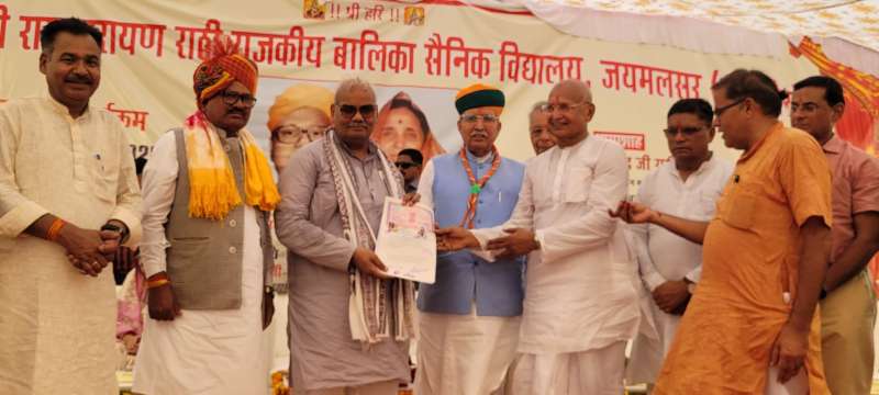 इस अवसर पर केंद्रीय मंत्री श्री मेघवाल ने कहा कि देश का पहला राजकीय बालिका सैनिक विद्यालय, जयमलसर में खुला है। यह हम सभी के लिए गर्व का विषय है। उन्होंने इसके लिए भामाशाह परिवार का आभार जताया और कहा कि दानवीर लोगों का धन चलता रहता है, जो नदी के पानी की तरह मीठा होता है। तिजोरी में जमा धन, समाज के किसी काम नहीं आता।