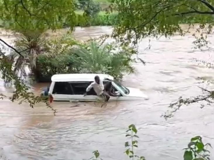 घटना से जुड़ा जो वीडियो वायरल हो रहा है, उसमें देखा जा सकता है कि एक बोलेरो गाड़ी नदी के तेज बहाव में फंसी हुई है। हालात इतने खराब दिख रहे हैं कि गाड़ी में मौजूद लोगों ने बिना देर किए छंलाग लगा दी। अगर खजूर के पेड़ से गाड़ी नहीं अटकती तो हालात कुछ और भी हो सकते थे।