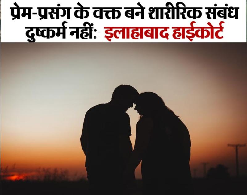 इलाहाबाद हाईकोर्ट का बड़ा फैसला: प्रेम संबंध में सहमति से बने शारीरिक रिश्ते को दुष्कर्म की श्रेणी में नहीं रखा जा सकता