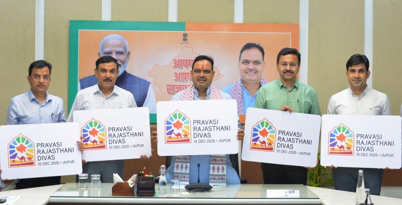 जयपुर। मुख्यमंत्री श्री भजनलाल शर्मा ने बुधवार को मुख्यमंत्री निवास पर प्रवासी राजस्थानी दिवस के लोगो का अनावरण किया। मुख्यमंत्री ने गत वर्ष दिसम्बर में राइजिंग राजस्थान ग्लोबल इन्वेस्टमेंट समिट के दौरान हर वर्ष 10 दिसम्बर को प्रवासी राजस्थानी दिवस मनाने की घोषणा की थी। इसी क्रम में इस साल प्रथम प्रवासी राजस्थानी दिवस का आयोजन जयपुर में 10 दिसम्बर को किया जाएगा। इस दिवस को सफल बनाने की दिशा में 26 सितंबर को हैदराबाद में मुख्यमंत्री की अध्यक्षता में प्रवासी राजस्थानी मीट का आयोजन किया जाएगा।