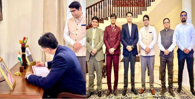 इस दौरान सचिन पायलट भारतीय दूतावास में 'डायरी' में अपने विचार लिखते नजर आए। जिस चेयर पर सचिन पायलट बैठे थे, उसके सामने टेबल थी। जिस पर एक साइड राष्ट्रपति द्रोपदी मुर्मू तो दूसरी ओर पीएम मोदी की तस्वीर रखी हुई थी।