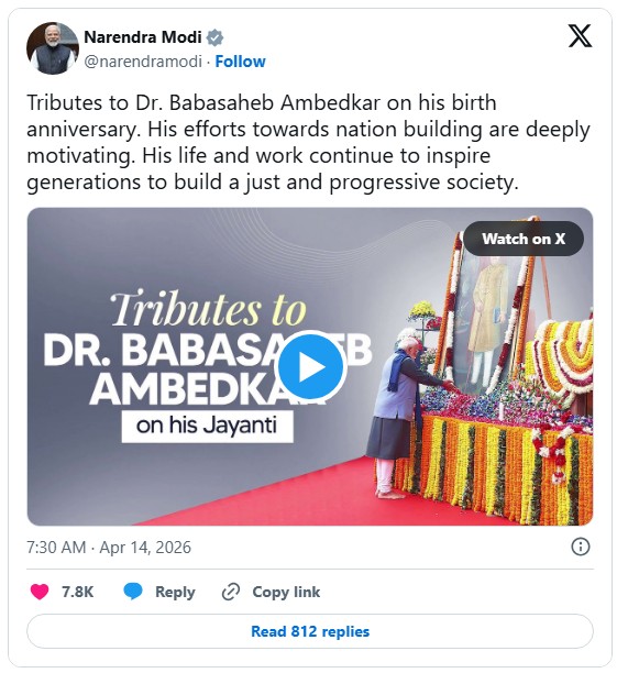 आंबेडकर जयंती पर Narendra Modi ने किया नमन — कहा, उनके विचारों से बनेगा न्यायपूर्ण समाज