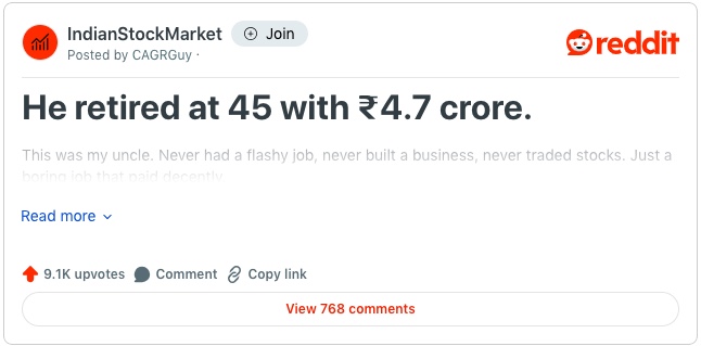 शख्स ने बताया कि मेरे चाचा ने 1998 में सबसे पहले एक म्यूचुअल फंड में 10,000 रुपये डाले…जब उन्होंने ये काम शुरू किया तो कोई भी ऐसा नहीं कर रहा था. कुछ सालों बाद, उन्होंने 500 रुपये से SIP शुरू किया. जब भी उनकी सैलरी बढ़ती, वो उसे बढ़ाते जाते. मसलन समय के साथ वो इसे 1000, फिर 2000, फिर 5000 और साल 2010 तक वो हर महीने ₹20,000 डाल रहे थे. जिस कारण उनके पास 45 साल की उम्र में इतने पैसे आ गए और वो अब रिटायर हो गए है.