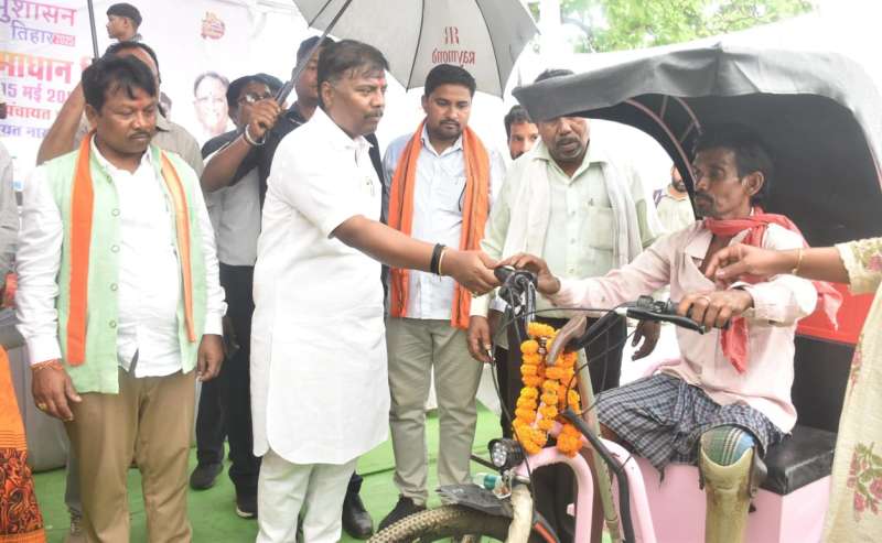 इसी कड़ी में नारायणपुर जिले के ग्राम सुलेंगा निवासी दिव्यांग रामूराम नाग ने सुशासन तिहार के पहले चरण में मोटराइज्ड ट्राईसाइकिल के लिए आवेदन दिया था। रामूराम ने बताया कि बीमारी के कारण उनका बायां पैर संक्रमित हो गया था, जिसे बाद में कटवाना पड़ा था। फिर कृत्रिम पैर लगवाने के बावजूद उन्हें आवागमन में भारी कठिनाई होती थी। इस समस्या पर गंभीरता से ध्यान देते हुए जिला प्रशासन द्वारा उनकी समस्या का निराकरण किया गया। रामूराम को 05 मई को पालकी में आयोजित समाधान शिविर में वन मंत्री केदार कश्यप और बस्तर लोकसभा सांसद महेश कश्यप द्वारा मोटराइज्ड ट्राईसाइकिल प्रदान की गई। ट्राईसाइकिल मिलने पर रामूराम ने खुशी जाहिर करते हुए कहा कि अब उन्हें अपने गांव से शहर आने-जाने के लिए सोचना नहीं पड़ेगा और ना ही कोई परेशानी होगी। उन्होंने सुशासन तिहार में अपनी समस्या के त्वरित समाधान के लिए मुख्यमंत्री विष्णु देव साय के प्रति आभार व्यक्त किया।
