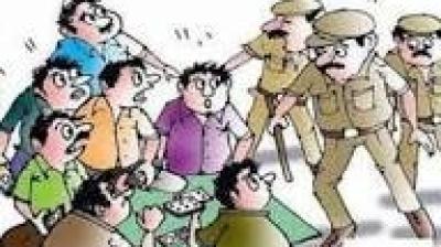 पुलिस की कार्रवाई में पकड़े गए जुआरी, घरों से निकालकर थाना पहुंचाया