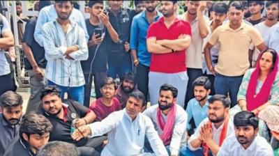 खराब सड़कों पर प्रदर्शन करने आया युवक, मंच तक पहुंचने से पहले पकड़ा गया