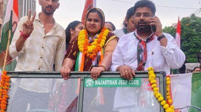 जयपुर। राजधानी जयपुर नगर निगम हेरिटेज के वार्ड 63 उपचुनाव में कांग्रेस ने जीत दर्ज की है। त्रिकोणीय मुकाबले में कांग्रेस उम्मीदवार भानु सैनी ने महज 59 वोटों से जीत...