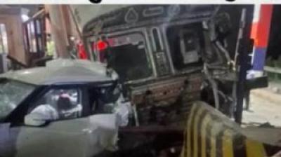 गेगल टोल प्लाजा पर रफ्तार का कहर, कंटेनर-कार टक्कर में सात जख्मी