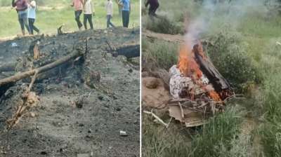 चूरू के भानुदा गांव में क्रैश हुआ जगुआर, मलबे में तब्दील हुआ विमान